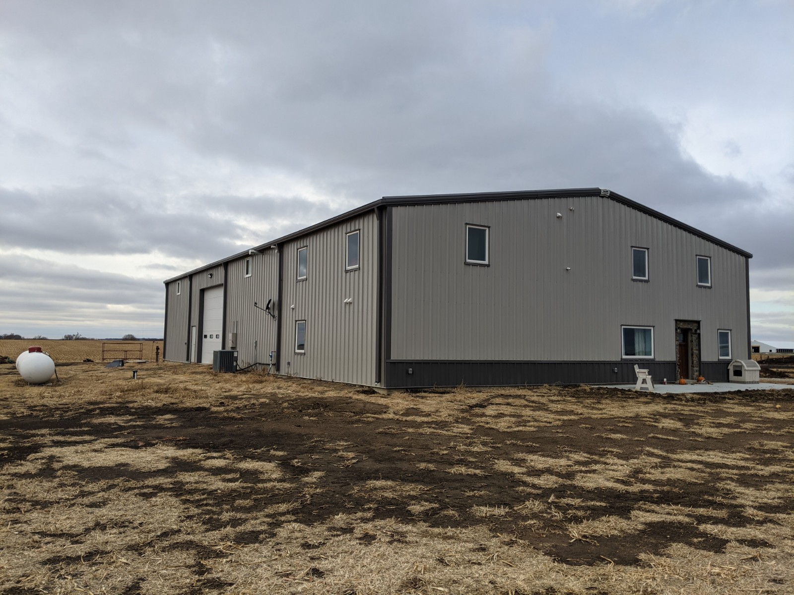 Color: Roof is Charcoal Gray, Wall is Fox Gray, Trims, Wainscot and Gutters/Downspouts are Charcoal Gray